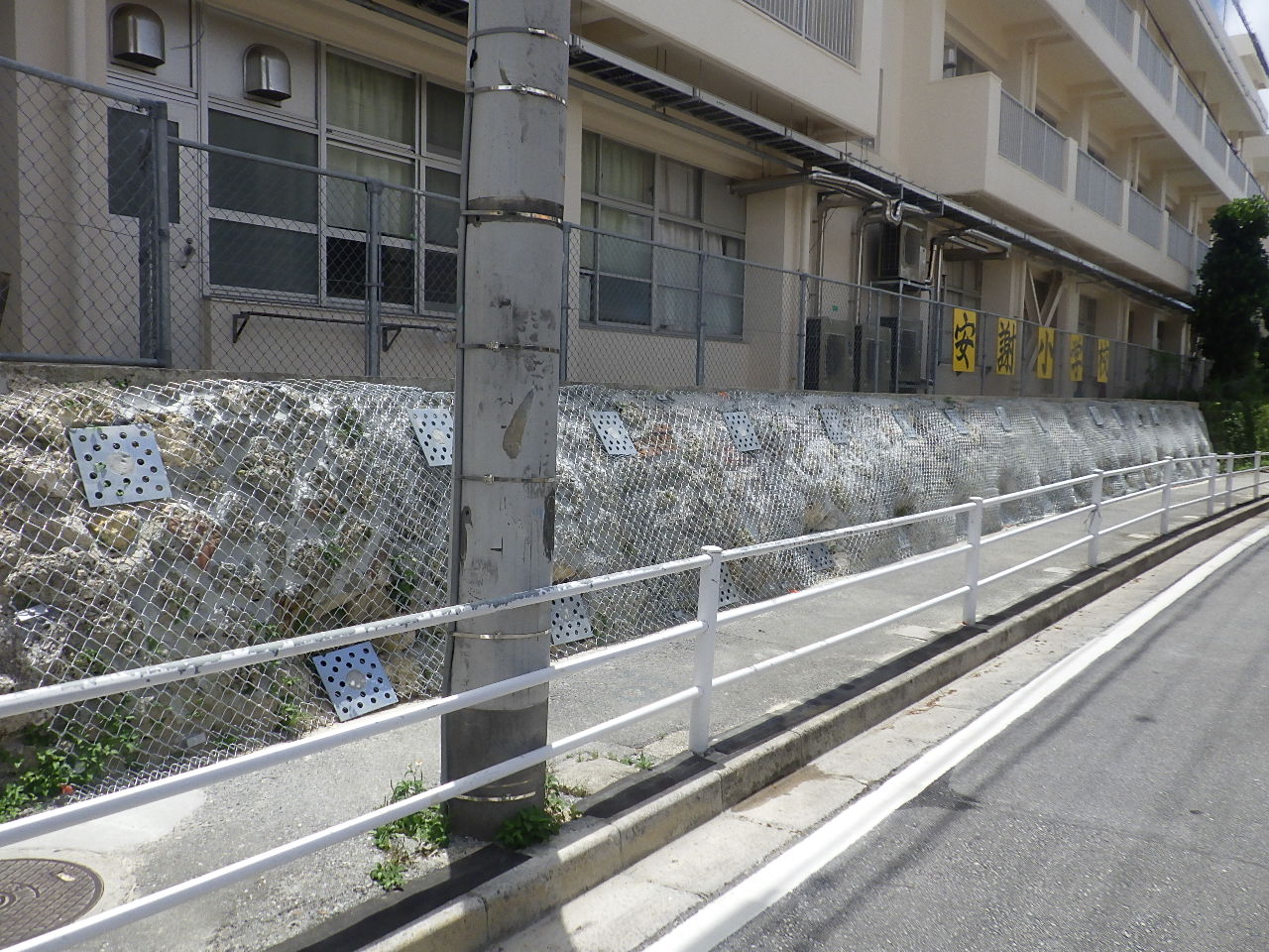 | 数量 | 安謝小学校(鉄筋挿入工2.0m 本数35本、ひし形金網面積A=42m2) 城西小学校(鉄筋挿入工2.5m 本数38本、ひし形金網面積A=65m2) |